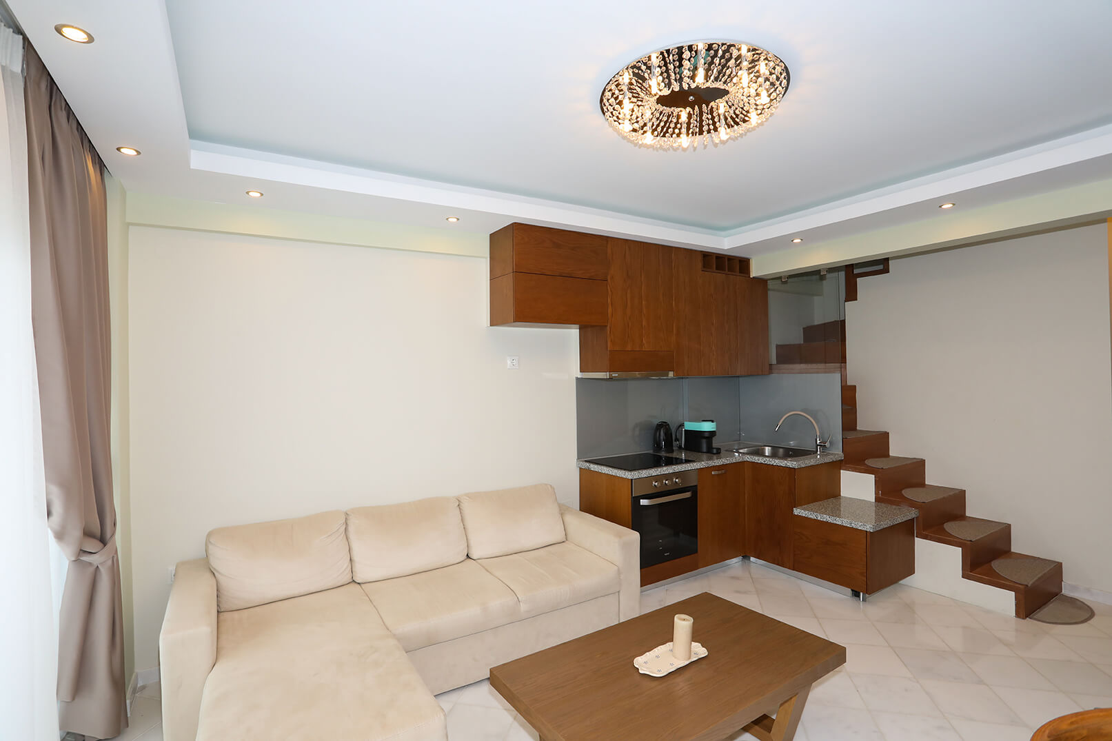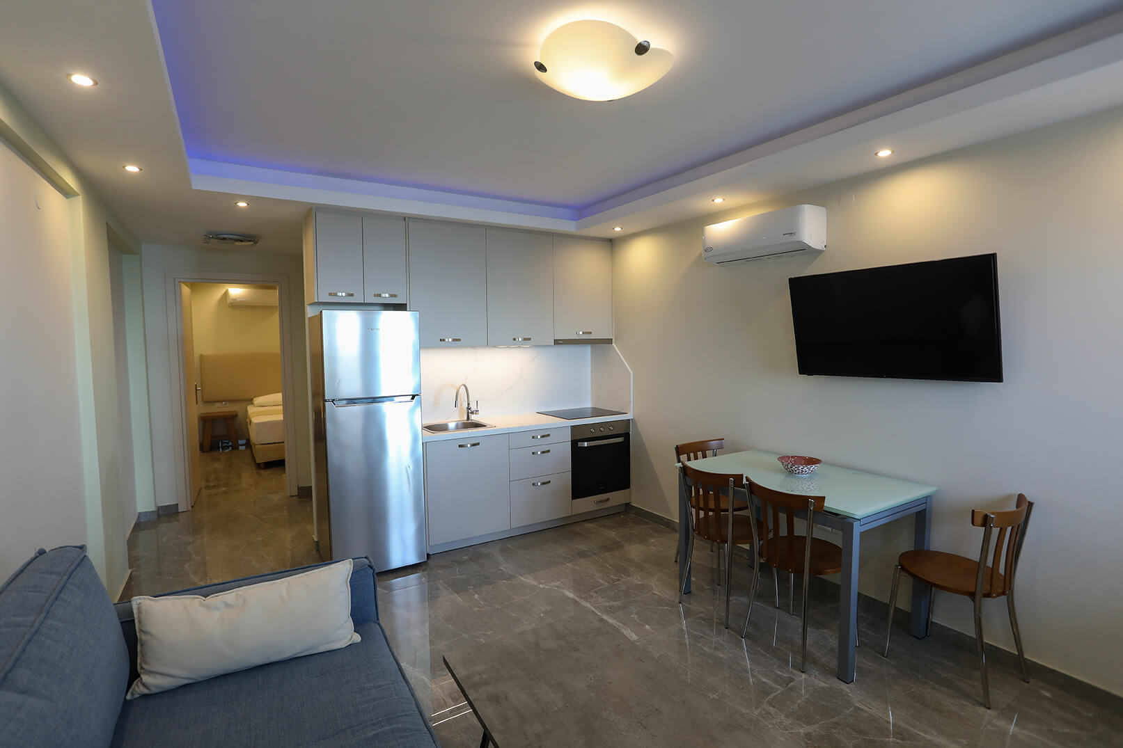 Απολαύστε τη διαμονή σας δίπλα στο κύμα, στα πλήρως εξοπλισμένα διαμερίσματα και μεζονέτες μας, που βρίσκονται σε δύο μοναδικές τοποθεσίες πάνω στην εκπληκτική παραλία Λούτσα–Βράχος.